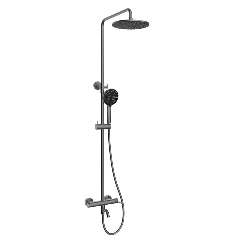 LEMARK Смеситель Karelia LMF-2026S-GM для ванны и душа с регулируемой высотой штанги и лейкой верхнего душа «Тропический дождь», графит