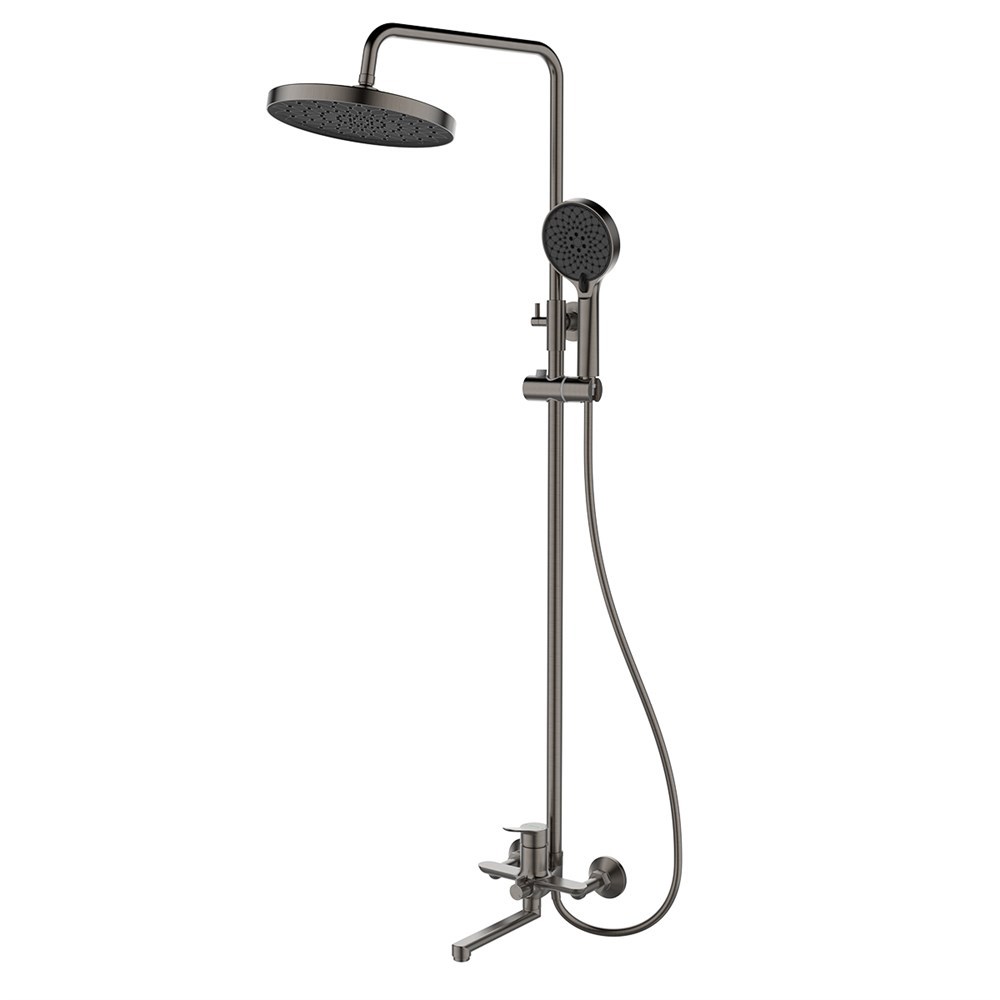 LEMARK Смеситель Siberia LMF-7026B-GM для ванны и душа с регулируемой высотой штанги и лейкой верхнего душа «Тропический дождь», графит