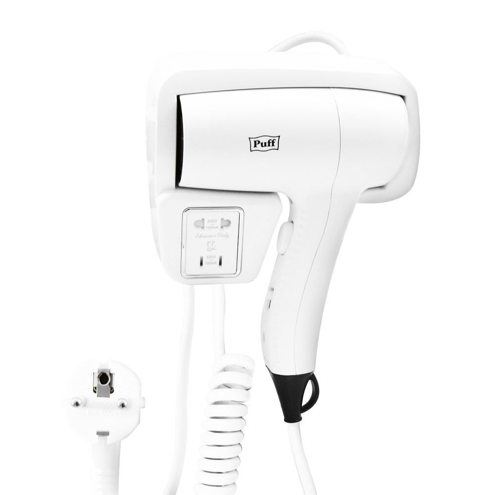 PUFF Фен для волос настенный "Puff-1201В", белый, с доп розеткой