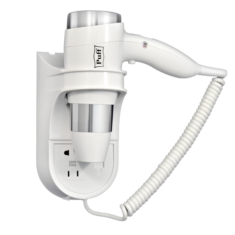 PUFF Фен для волос настенный "Puff-1600В", белый, 1,6 кВт, с розеткой