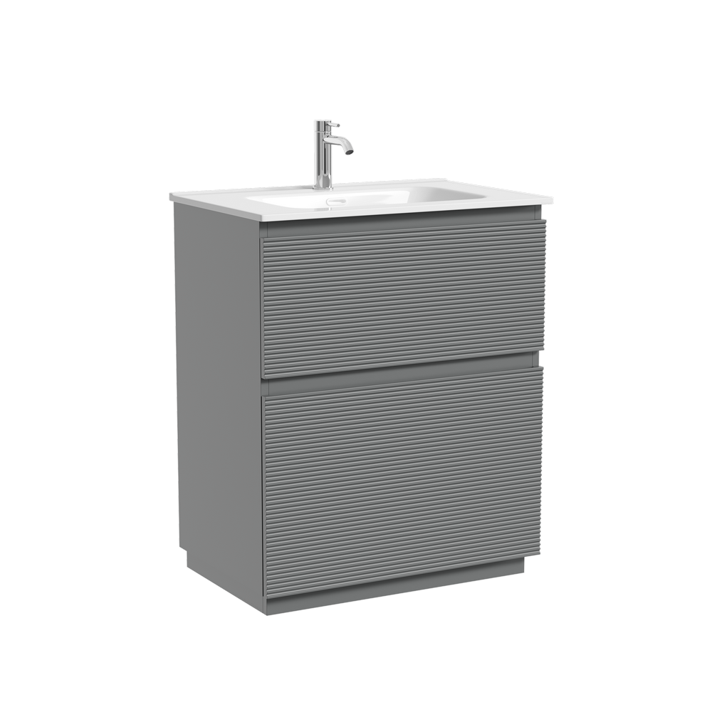 SANCOS Тумба напольная с рельефным фасадом Folk Floor 690х445х850, c двумя ящиками оснащенными доводчиками скрытого монтажа с системой плавного закрывания, цвет Ergraut soft, арт.FL70FES