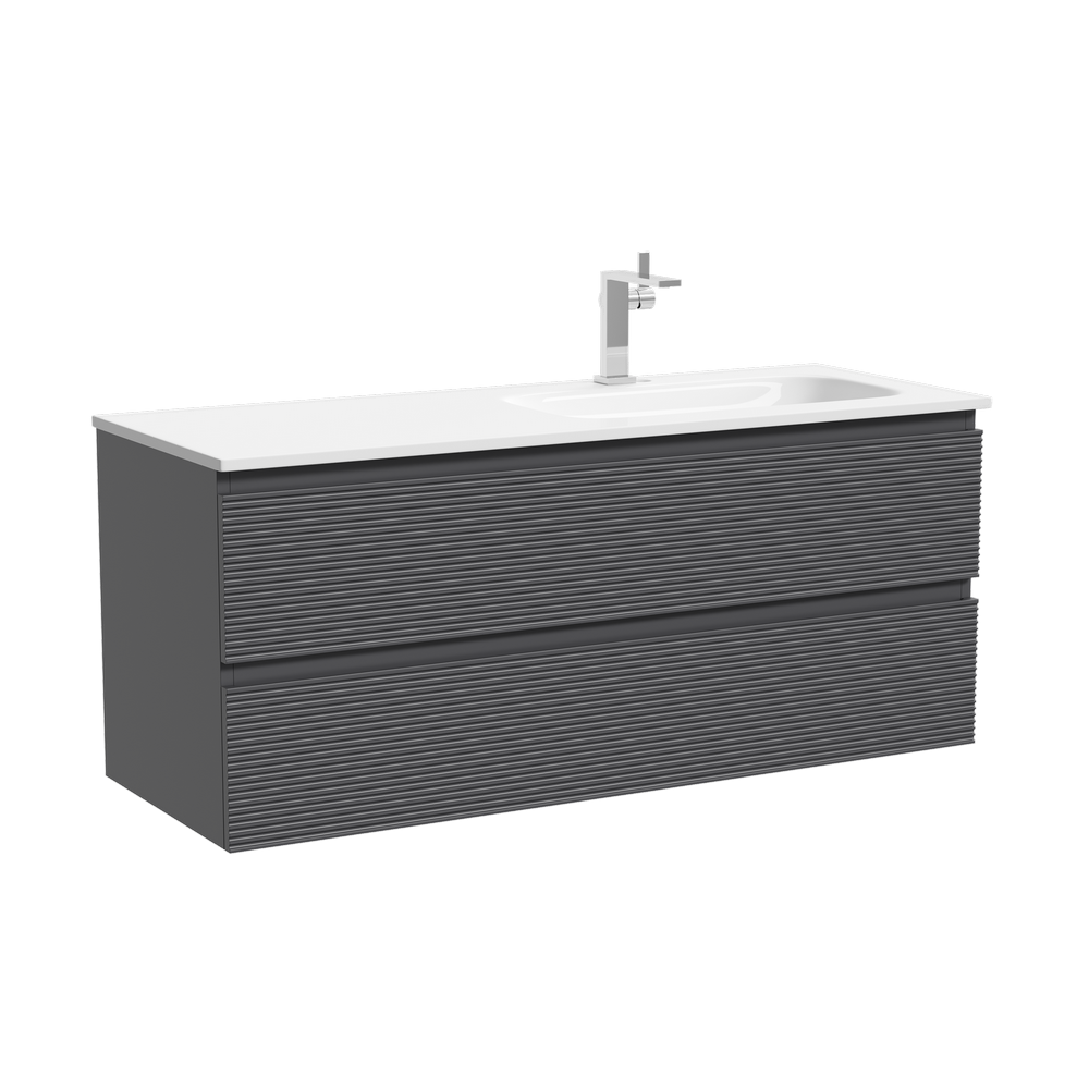 SANCOS Тумба подвесная с рельефным фасадом Folk правая 1195х445х500, c двумя ящиками оснащенными доводчиками скрытого монтажа с системой плавного закрывания, цвет Grey soft, арт.FL120RGS
