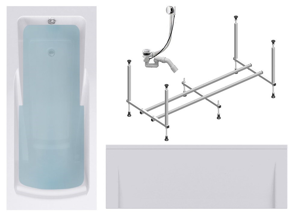 TIMO Комплект Акриловая ванна HELLA1575 150*75*63+Каркас + Слив-перелив+Фронтальная панель