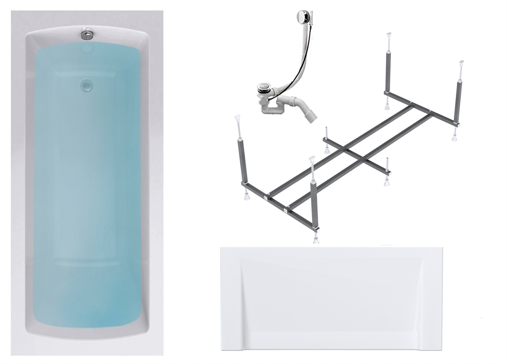 TIMO Комплект Акриловая ванна RITTA1760 1700*600*580+Каркас+Слив-перелив+Фронтальная панель