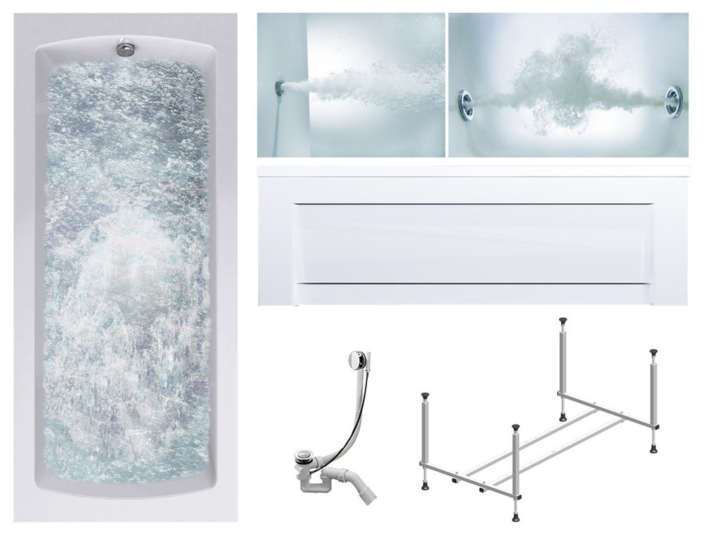 TIMO Комплект Акриловая ванна RITTA1775 170*75*63+Каркас + Слив-перелив+Гидромассаж 6 форсунок+Гидромассаж спины 3 форсунки+Фронтальная панель
