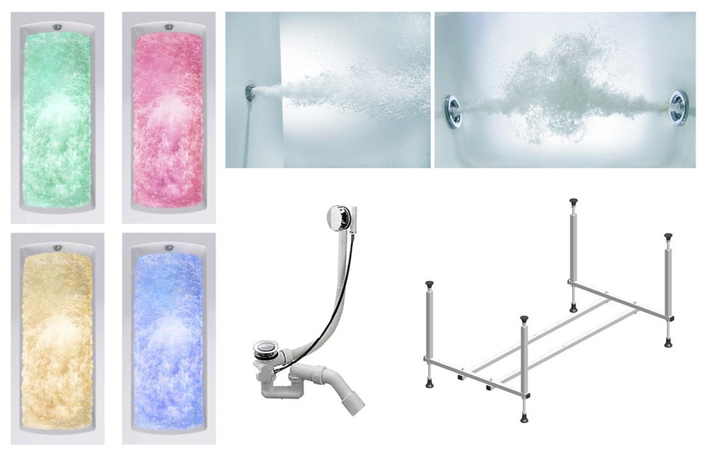 TIMO Комплект Акриловая ванна RITTA1775 170*75*63+Каркас + Слив-перелив+Гидромассаж 6 форсунок+Гидромассаж спины 3 форсунки+Хромотерапия