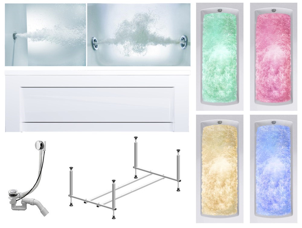 TIMO Комплект Акриловая ванна RITTA1775 170*75*63+Каркас + Слив-перелив+Гидромассаж 6 форсунок+Гидромассаж спины 3 форсунки+Хромотерапия+Фронтальная панель