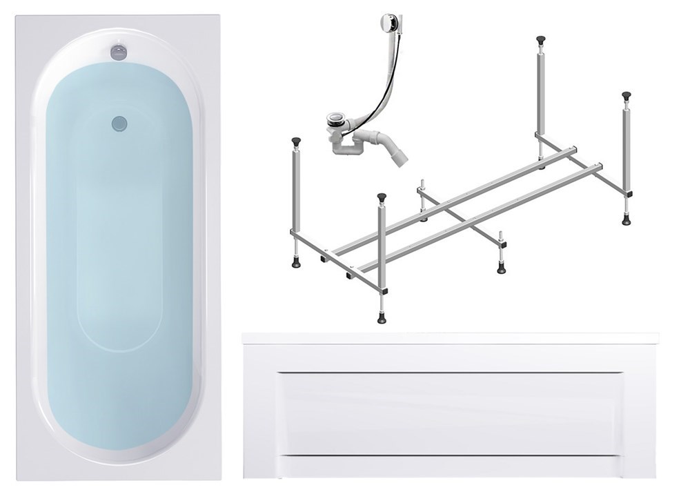 TIMO Комплект Акриловая ванна ROHA1570 150*70*58+каркас+слив-перелив+фронтальная панель