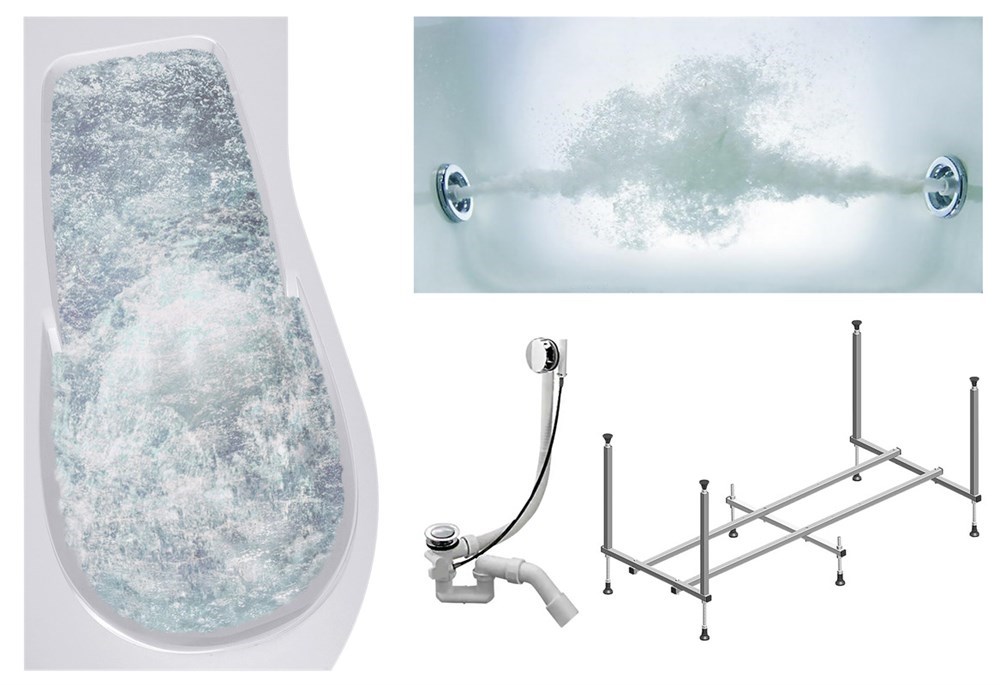 TIMO Комплект Акриловая ванна VINO1590L 150*90*66+Каркас + Слив-перелив+Гидромассаж 6 форсунок
