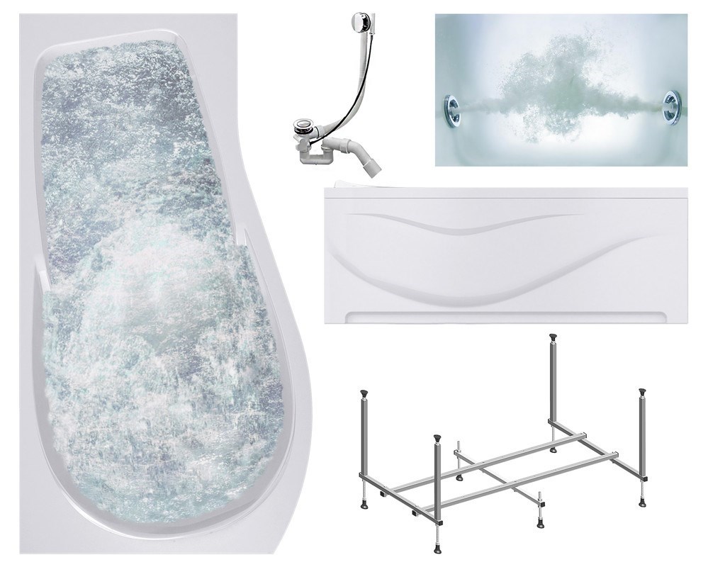 TIMO Комплект Акриловая ванна VINO1590L 150*90*66+Каркас + Слив-перелив+Гидромассаж 6 форсунок+Фронтальная панель