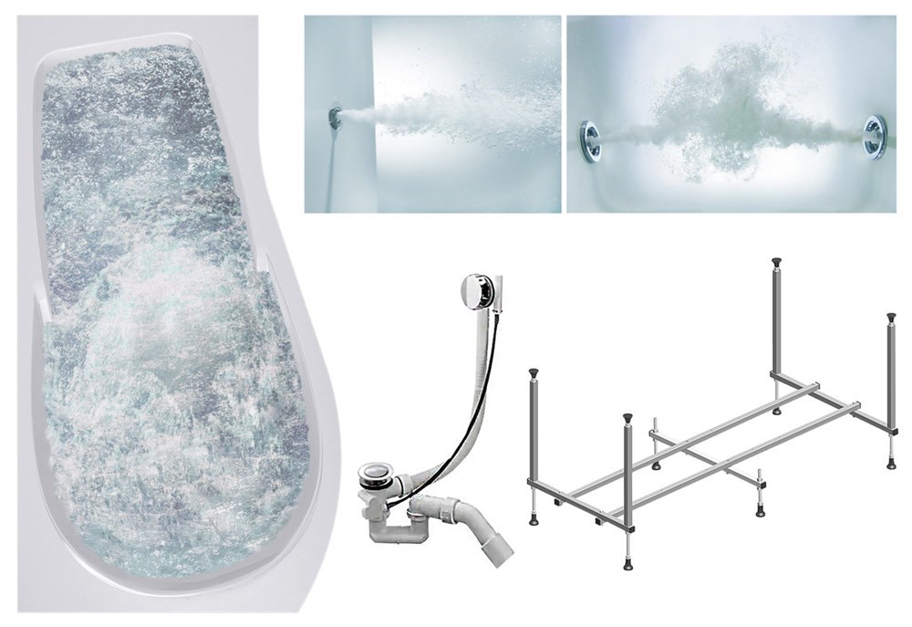 TIMO Комплект Акриловая ванна VINO1590L 150*90*66+Каркас + Слив-перелив+Гидромассаж 6 форсунок+Гидромассаж спины 3 форсунки