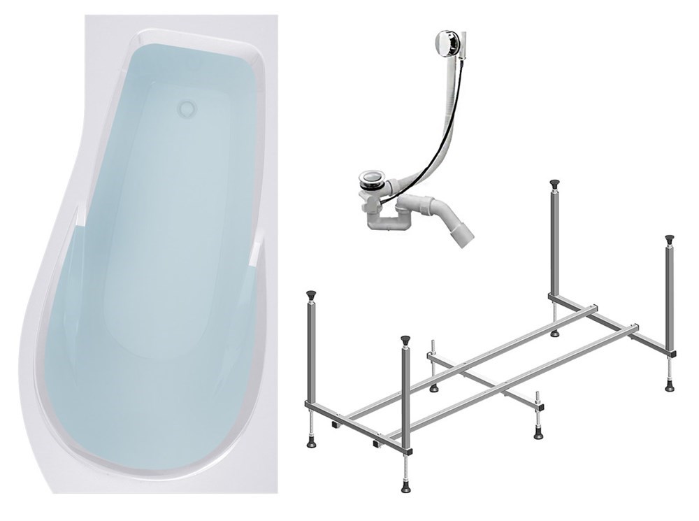 TIMO Комплект Акриловая ванна VINO1590R 150*90*66+Каркас + Слив-перелив