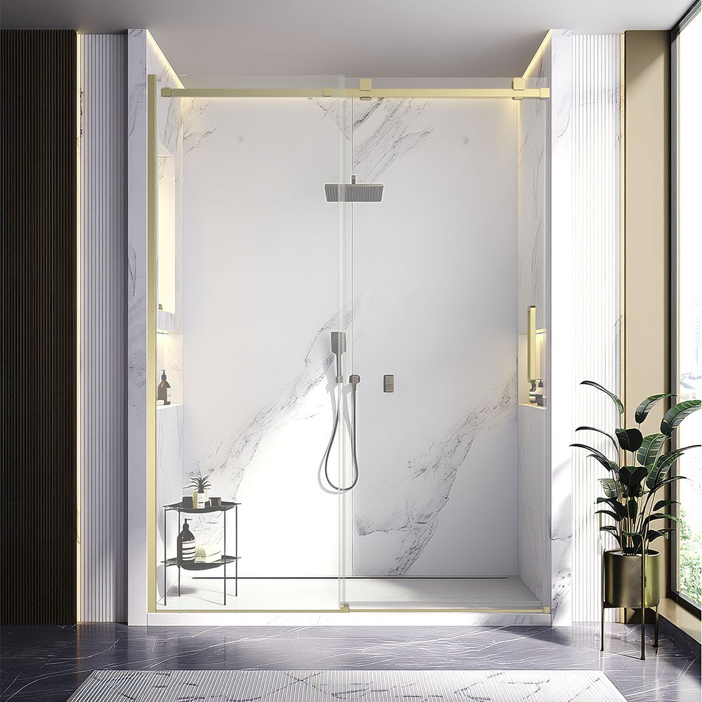 VECONI Душевая дверь раздвижная Vianno VN-75G, 1200x2000, золото брашинг, стекло прозрачное