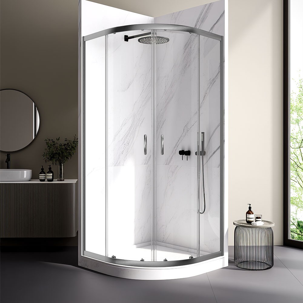 VECONI Душевой угол квадратный, двери раздвижные Rovigo RV-202GR, 800x800x1900, брашированный графит, прозрачное стекло