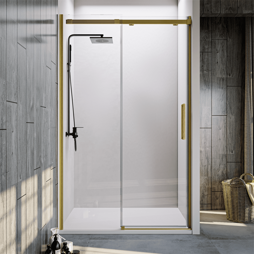 VECONI Vianno Душевая дверь раздвижная профиль - золото брашированное / стекло - прозрачное, ширина 120 см
