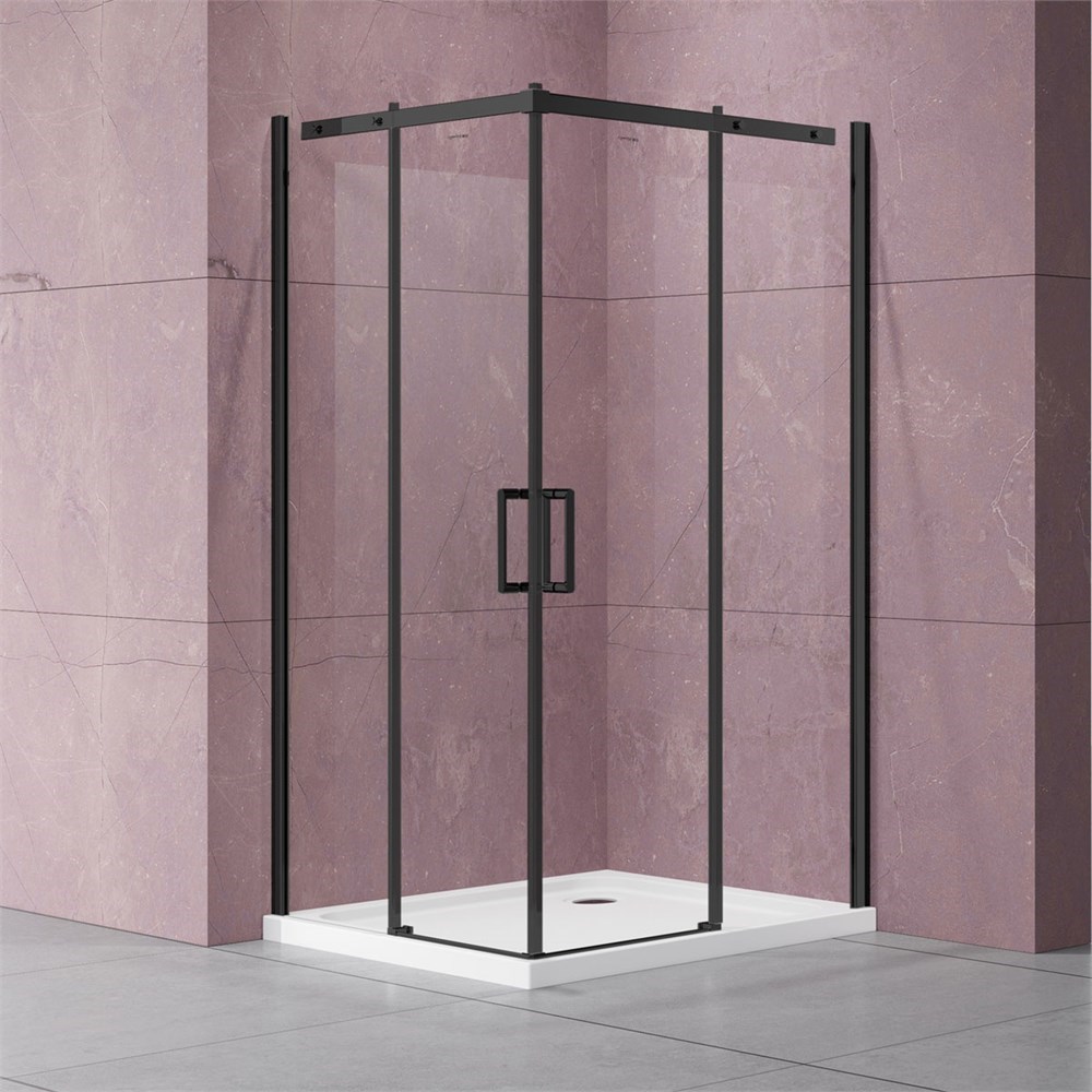 VINCEA Dice Душевой уголок квадратный размер 100x100 см, двери раздвижные, профиль - черный / стекло - прозрачное