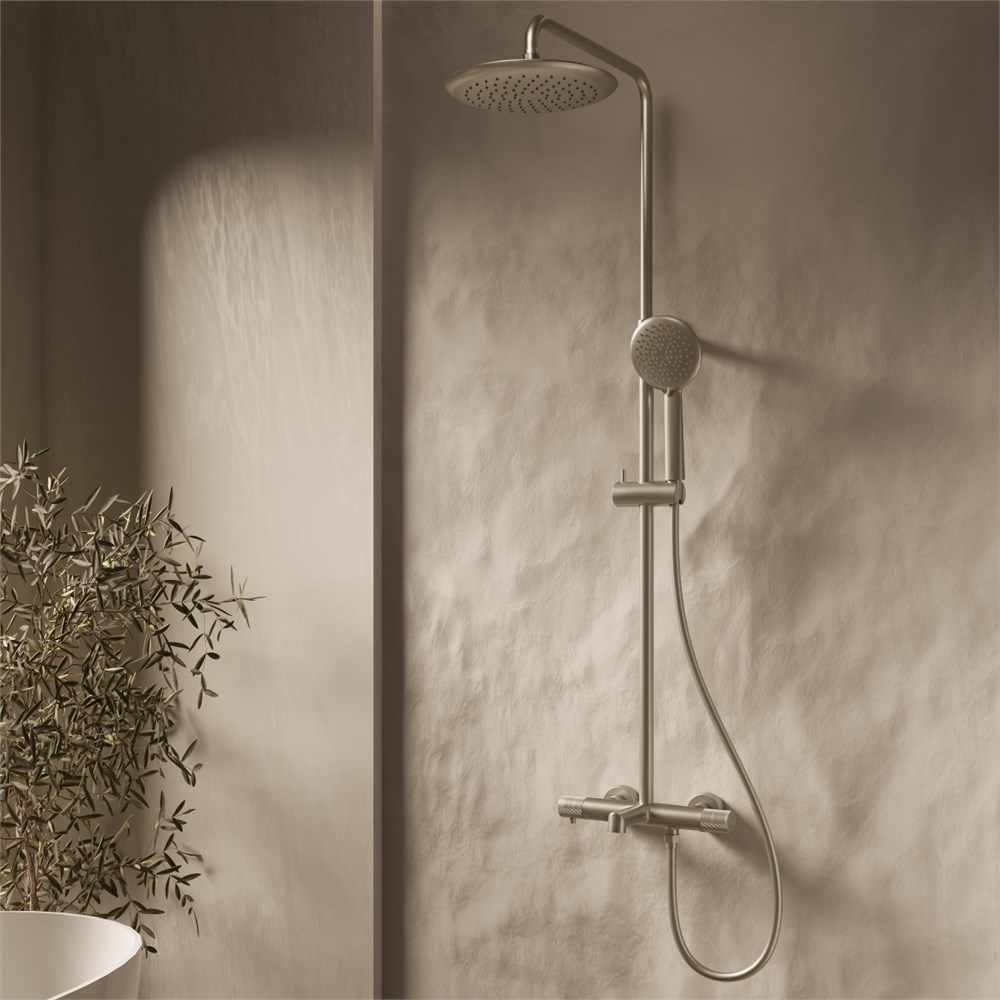 VINCEA Душевая стойка Desire VSFS-1D1TBN термостатическая с изливом, 25см верх душ, брашированный никель