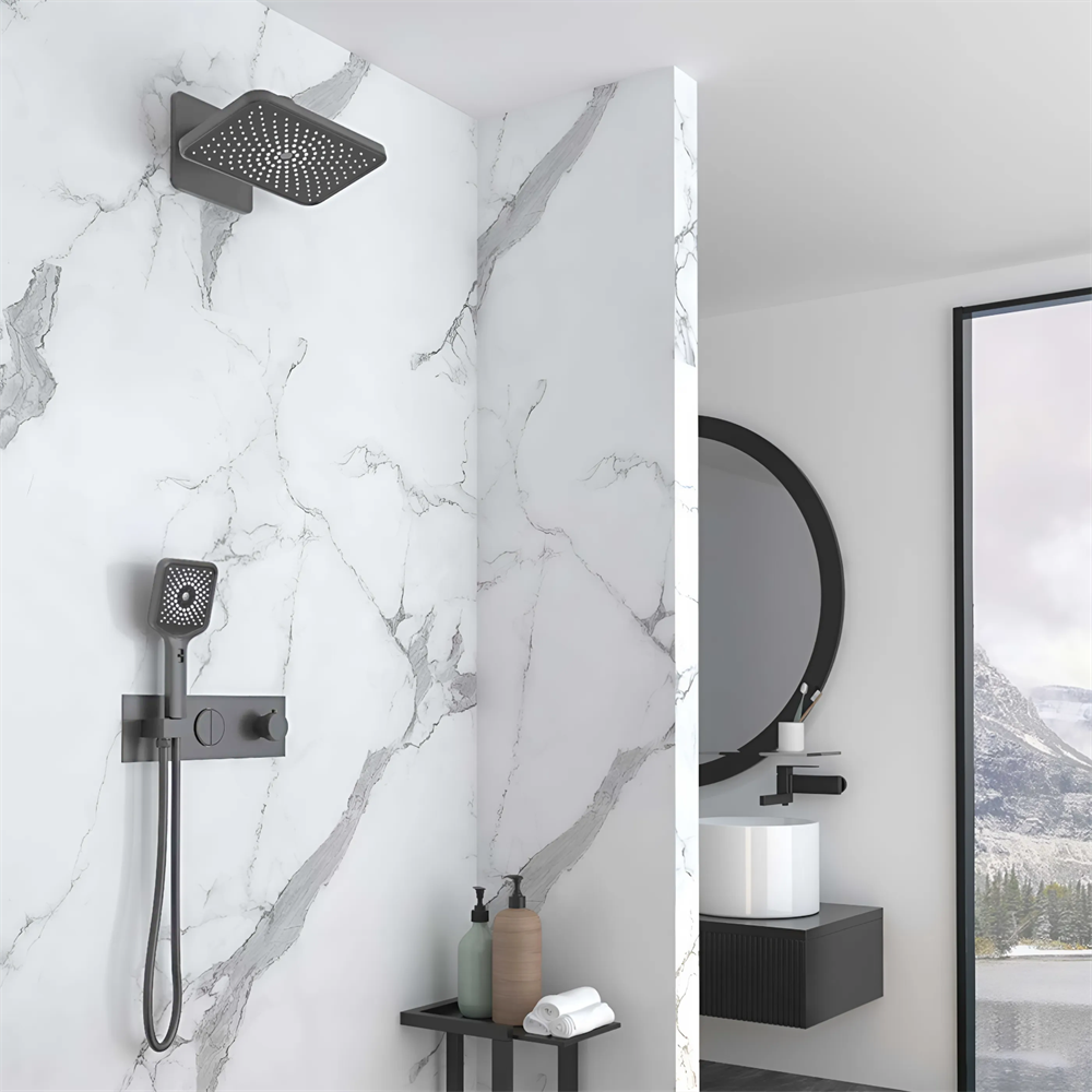 VINCEA Душевой комплект Inspire VSFW-422TI4GM встраиваемый, термостат, двухрежимный, вороненая сталь