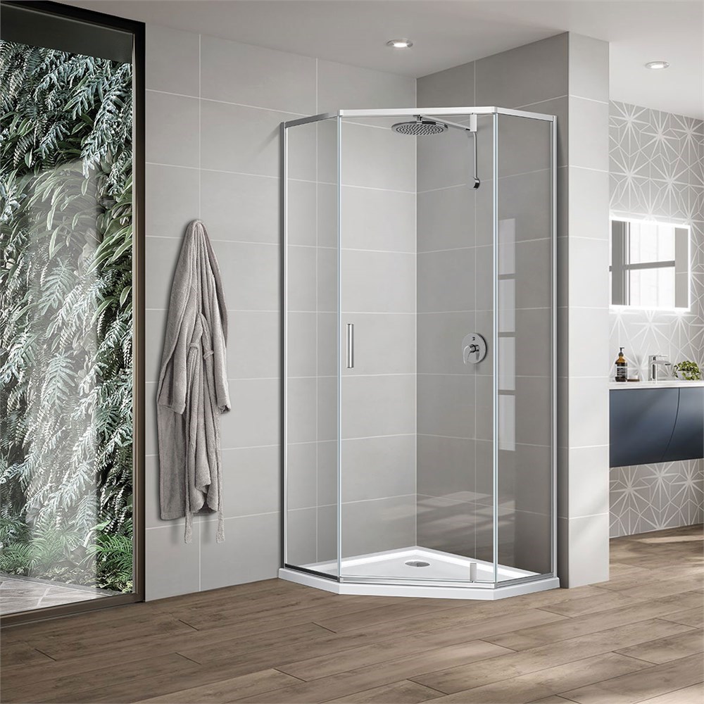 VINCEA Slim-U Душевой уголок пятиугольный размер 90x90 см, двери распашные, профиль - хром / стекло - прозрачное